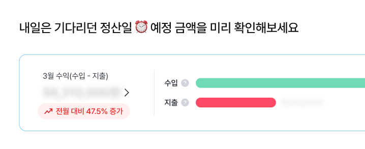 "전월 매출 비교부터 선정산 납부 금액까지더 똑똑해진 정산달력을 만나보세요!"